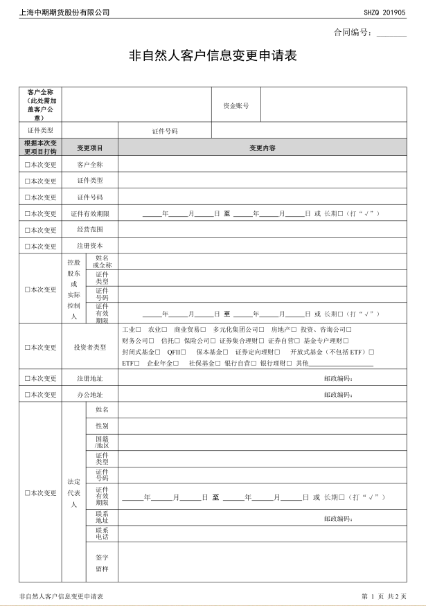 非自然人客戶資料變更申請表